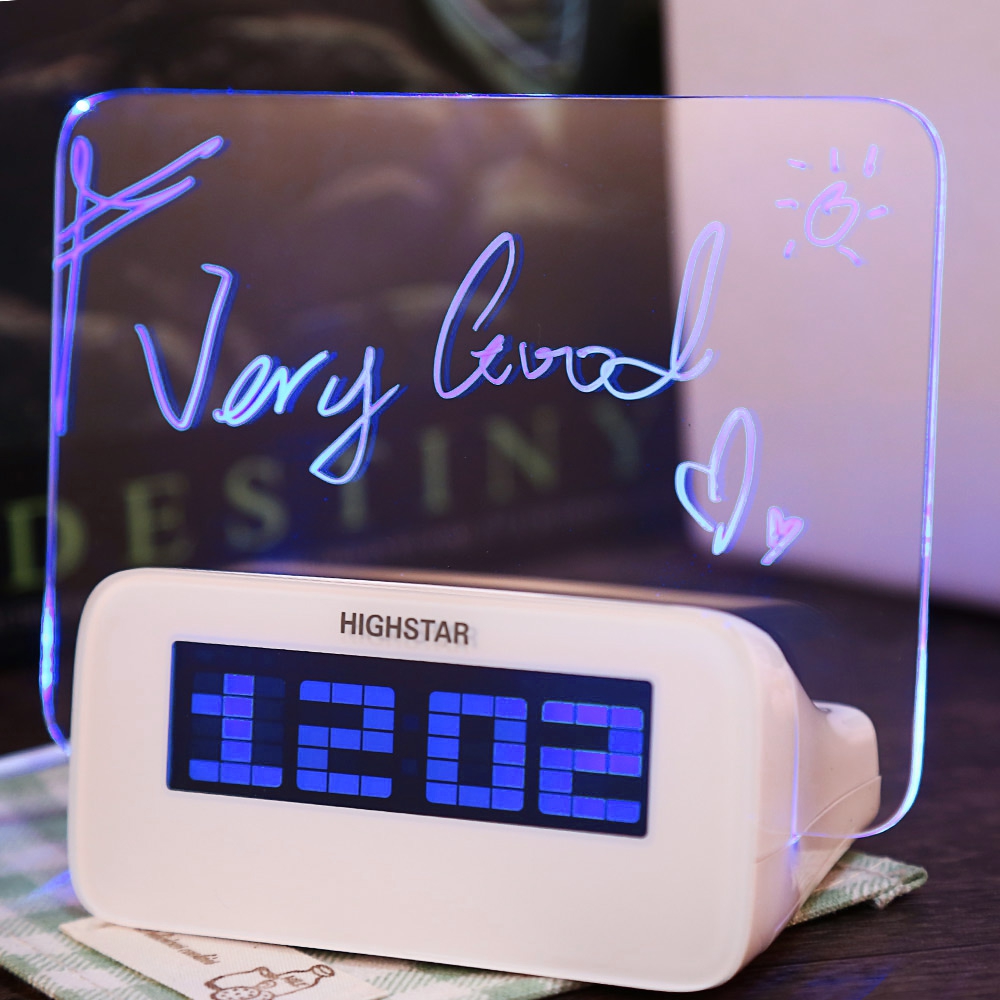 Item Tittle-- Electric Luminous Alarm Clock Memo Message Board Highlighter Digital Timer Night Light Mute