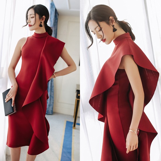 肩から広がるフレアデザインがエレガント♪