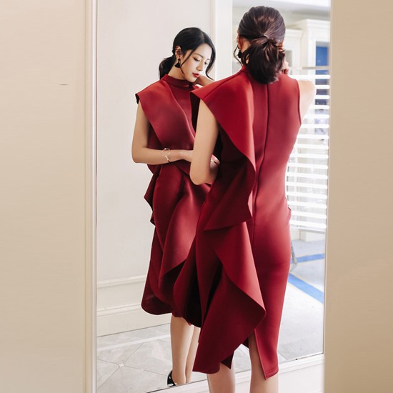 体のラインを綺麗にみせるペンシルワンピースです。