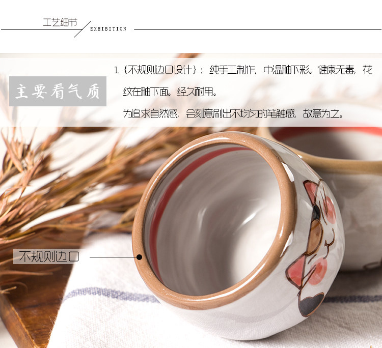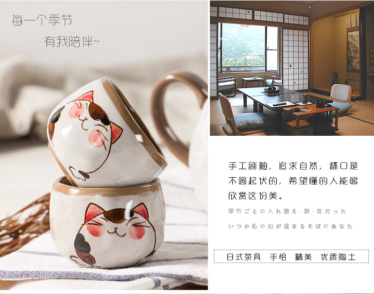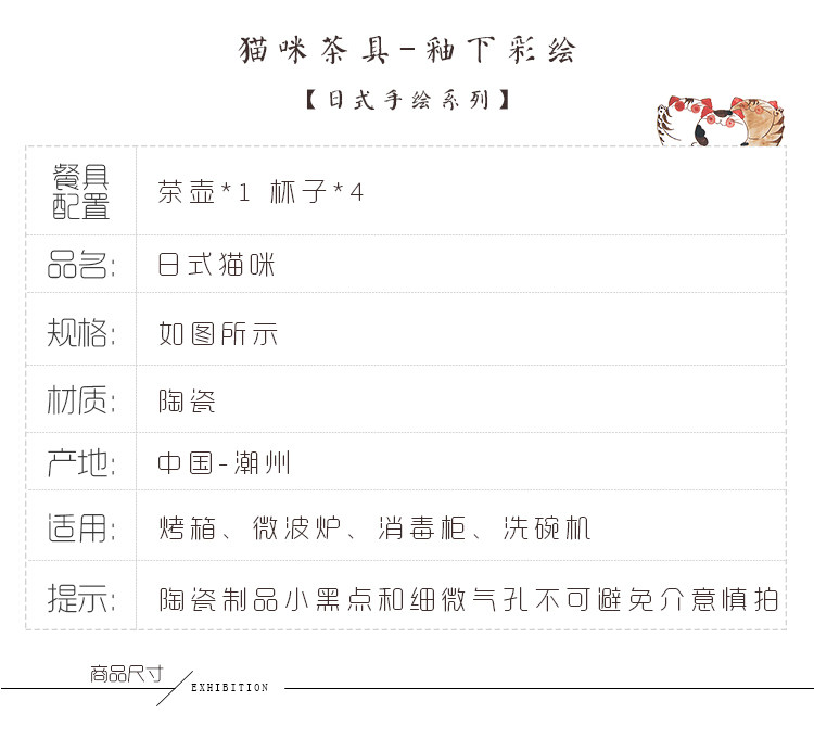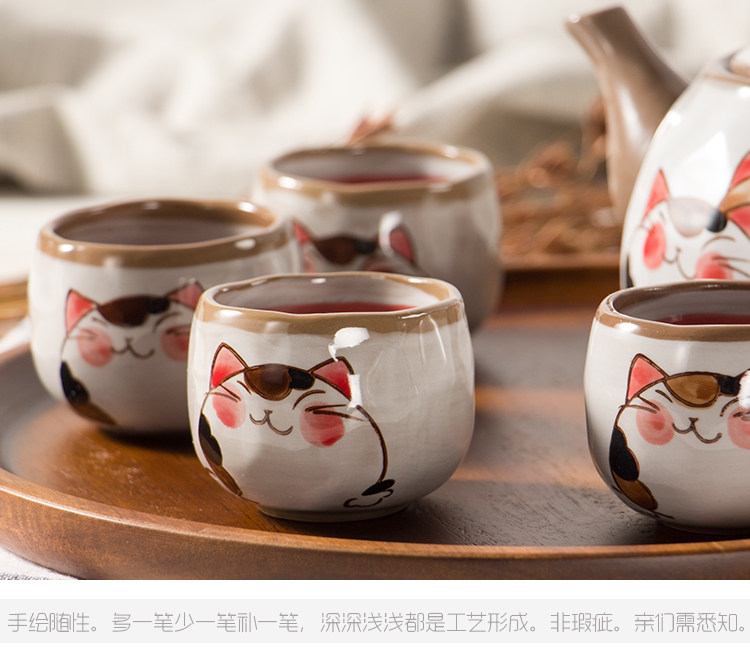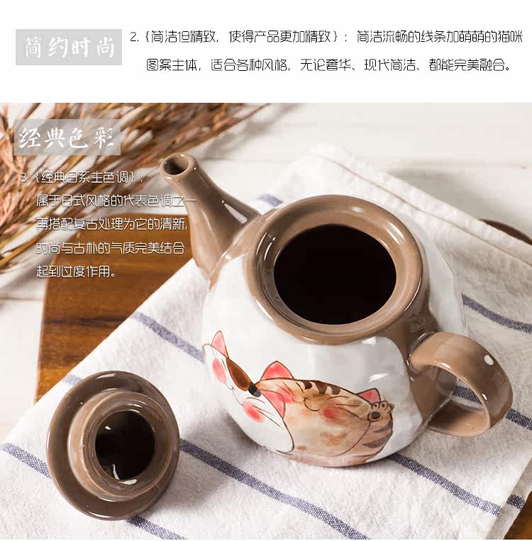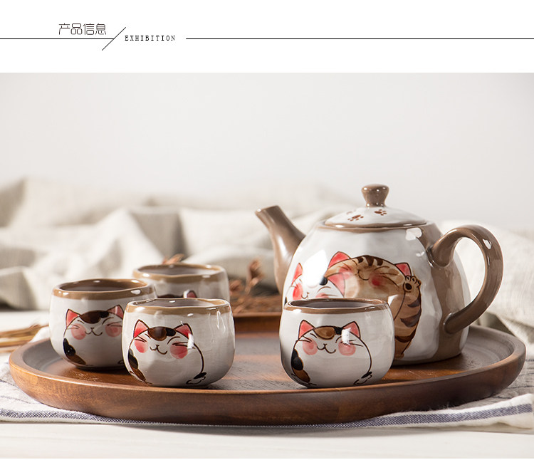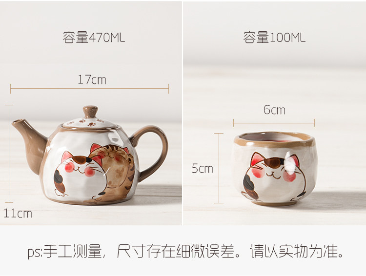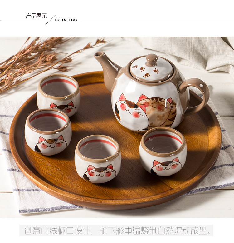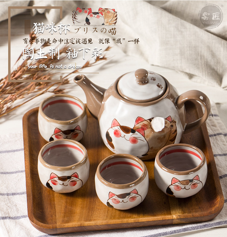 日式茶具套装 卡通猫咪茶具功夫茶具茶壶茶杯可爱手绘釉下彩