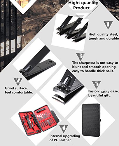 Studio : Cammyllc Publisher : Cammyllc Binding : Misc. Product Description The 16 in 1 mens grooming kits has all the tools you need to make professional manicure and pedicure.Small size and lightweight make it convenient to carry, great for travel and daily life! Each tool is manufactured by the careful process of cutting to make sure it can be used more comfortably.It is very practical,it is a great gift for yourself,families and friends!