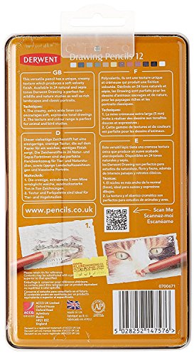 Derwent Colored Drawing Pencils, 5mm Core, Metal Tin, 12 Count (0700671)