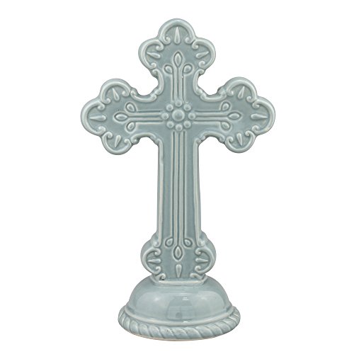 Stonebriar SB-6111A Accents of Faith 10" Chambray Ceramic Cross Pedestal