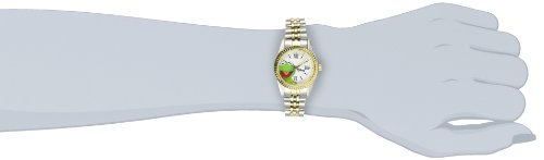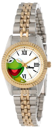 [Description] Disney Women``s Kermit the Frog watch with Roman Numerals and Minute track Two Tone metal case and white dial Two tone Bracelet Accurate Japanese quartz movement with analog display. Scratch Resistant Mineral Crystal Water-resistant to 99 feet (30M) 1 Year Limited Manufacturers Warranty