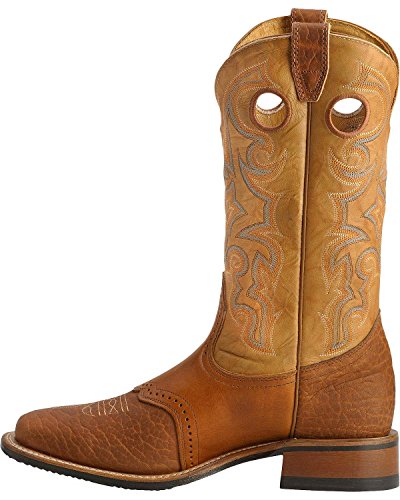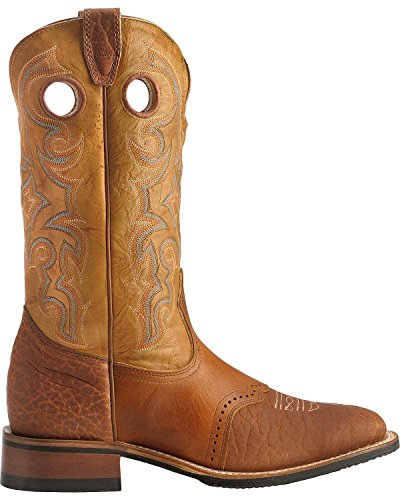 Studio : Boulet Publisher : Boulet Binding : Apparel Product Description Created in 1933, Boulet Boots began making their mark on cowboy boot history with attention to stylish designs, a comfortable fit, and quality products. With a rich Canadian history, extending into army footwear production during WWII, Boulet Boots maintain a tradition of excellence with each generation of the Boulet family at the helm. A long history crafting boots, attention to customer needs, and a wide variety of cowboy boot styles makes Boulet boots some of the best around This Boulet boot features full grain leather handcrafted construction. Boot boasts a brown leather foot under a fancy stitched 13" tan leather shaft. Leather lined. Walking heel and square toe profile. Easy-on pull straps and holes. Imported from Canada. 0