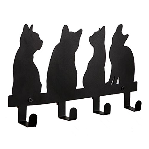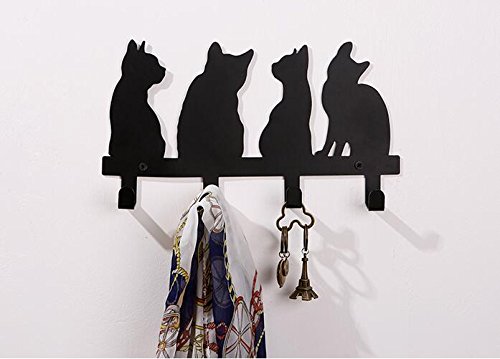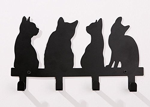 YOURNELO Metal Cute Cats Wall Mounted Coat Rack 4 Hooks