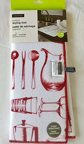 Harman Dish Drying Mat, Reversible Microfiber, 15" x 20" Red and White Pitcher