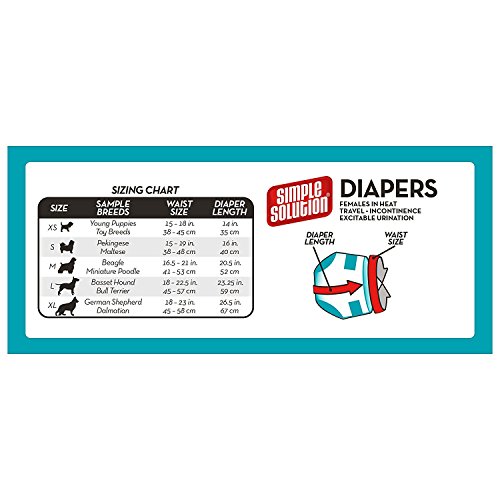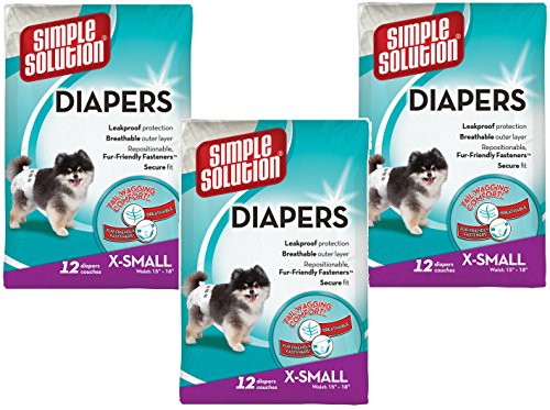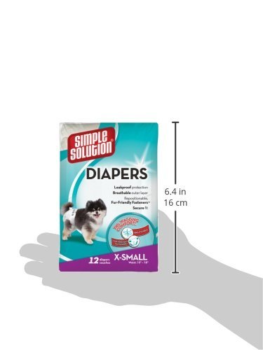 Studio : Bramton Company Publisher : Bramton Company Binding : Misc. Product Description (3 Pack) Simple Solution Disposable Dog Diapers, 12 Count each - X-Small (36 Total). Simple Solution X-Small Disposable Diapers for dogs 4 lb - 8 lb and waist size 10 in - 13 in provide leakproof protection and eliminate dog urine messes. Each diaper features a tail hole, repositionable fur-friendly fasteners and a comfort leg fit to give your dog a secure fit every time. Ideal for dogs with urinary incontinence, females in heat, and excitable urination. 12 diapers per package, 3 Packages Included. 0