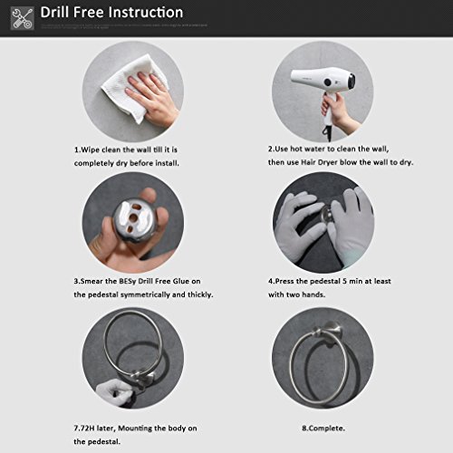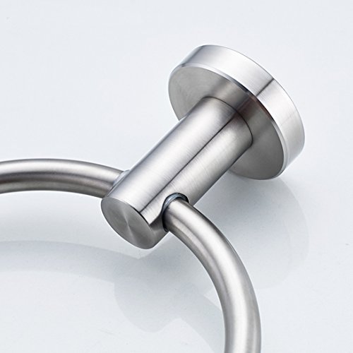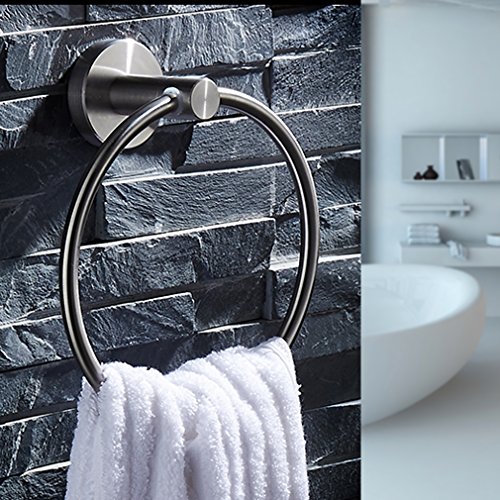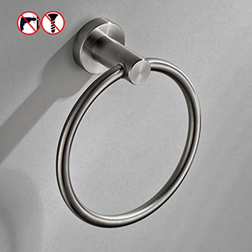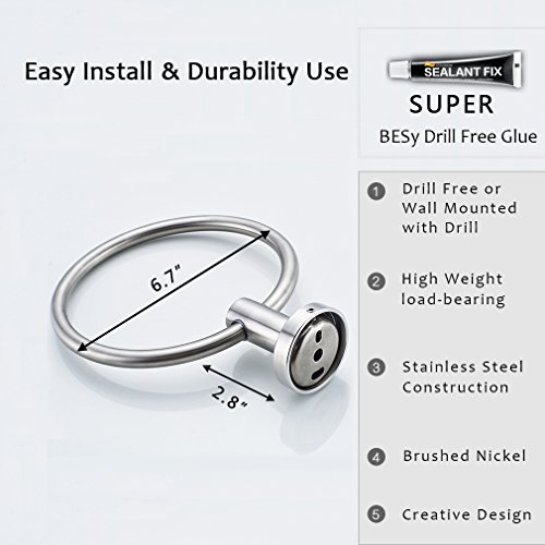 BESy SUS304 Stainless Steel Bathroom Towel Ring Towel Holder, Drill free with Glue or Wall Mounted with Screws, Heavy Duty Round Pedestal, Brushed Nickel Finish