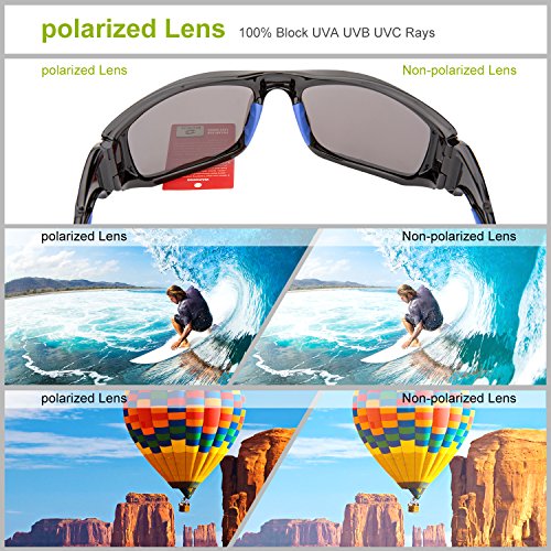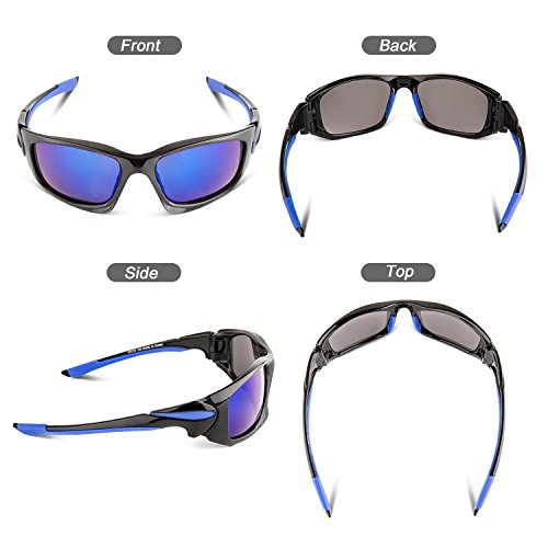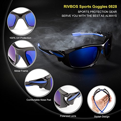 RIVBOS® Polarized Sports Sunglasses Driving Glasses for Men Women Tr90 Unbreakable Frame for Cycling Baseball Running Rb828 (TR90 black&blue)