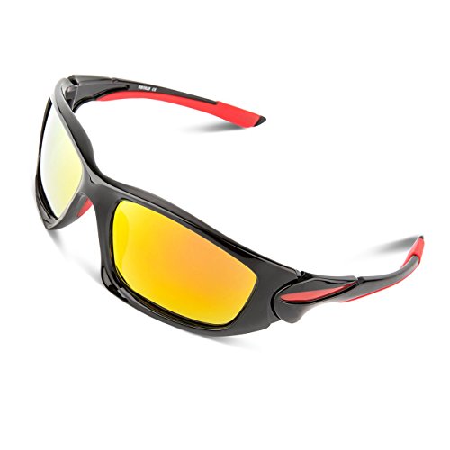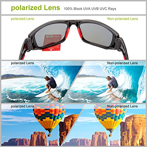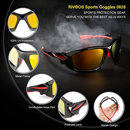 RIVBOS® Polarized Sports Sunglasses Driving Glasses for Men Women Tr90 Unbreakable Frame for Cycling Baseball Running Rb828 (TR90 black&red)