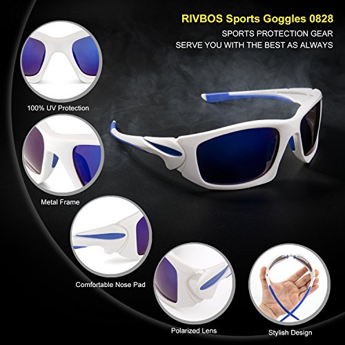 RIVBOS® Polarized Sports Sunglasses Driving Glasses for Men Women Tr90 Unbreakable Frame for Cycling Baseball Running Rb828 (TR90 white)