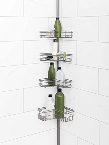 Zenna Home 2130NN, Tension Corner Pole Caddy, Satin Nickel