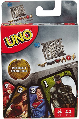 -. Binding : Toy -. Brand : Mattel -. Color : Multi Color -. EAN : 0887961477337 -. Feature : It's the matching game you love, now featuring iconic Justice League superheroes! / Players take turns matching one of their cards with the color or number card shown on top of the deck / Score points by being the first to get rid of all the cards in your hand / First player or team to 500 wins! / Special new wild card: the Superman X-Ray vision card! This card lets you look at any other player's cards and make exchanges that pump up the excitement! -. IsAdultProduct : 0 -. Label : Mattel -. Manufacturer : Mattel -. Model : FDV59 -. MPN : FDV59 -. NumberOfItems : 1 -. PackageQuantity : 1 -. PartNumber : FDV59 -. ProductGroup : Toy -. ProductTypeName : TOYS_AND_GAMES -. Publisher : Mattel -. Studio : Mattel -. Title : Mattel UNO DC Justice League Card Game -. UPC : 887961477337 -. Warranty : 1 year warranty against manufacturer defects