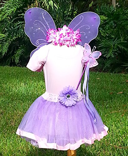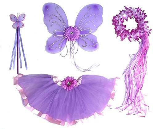 -. Binding : Toy -. Brand : Fairytale Play -. Color : lavender, pink, purple -. Department : girls -. EAN : 0703546602966 -. Feature : Saturday lavender butterfly wings with flower accent and ribbons in lavender and sparkle accents / Lavender tutu is trimmed in sewn light pink satin and has a flower clip accent that can be worn in the hair / Hallo has pink and purple ribbons and has an elastic headpiece / Size fits child from 2-7 years of age / Wand measures 15" in length and has a sturdy butterfly, ribbons and matches the entire set -. Genre : Role Playing -. IsAdultProduct : 0 -. Label : Fairytale Play -. Manufacturer : Fairytale Play -. MPN : 5579476 -. NumberOfItems : 1 -. PackageQuantity : 5 -. PartNumber : 5579476 -. ProductGroup : Toy -. ProductTypeName : TOYS_AND_GAMES -. Publisher : Fairytale Play -. Size : medium -. Studio : Fairytale Play -. Title : 5 PC Girls Lavender and Pink Fairy Set with Wings, Wand, Halo and Flower Clip Age 2-7 -. UPC : 703546602966
