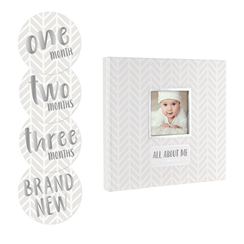 Celebrate baby's first year with Pearhead's herringbone design keepsake baby memory book and sticker set