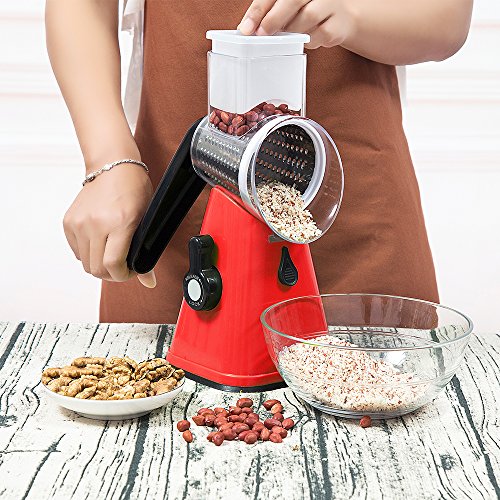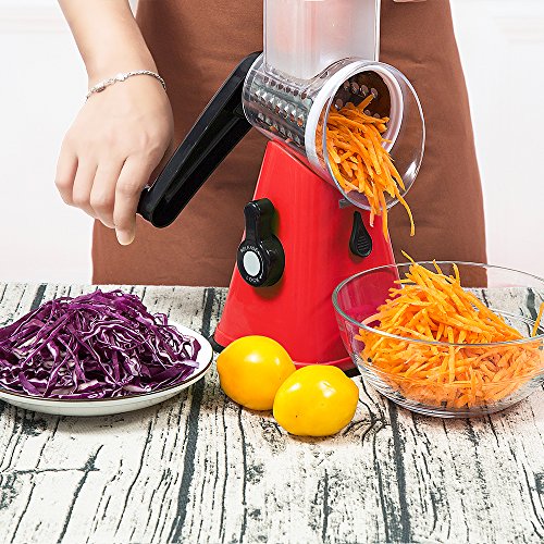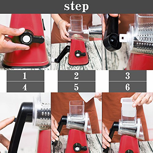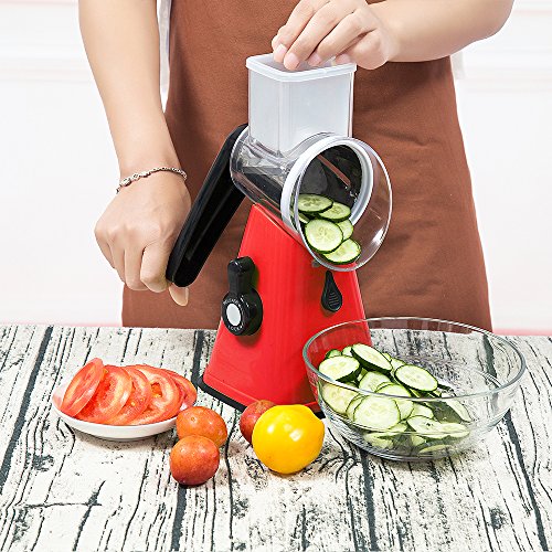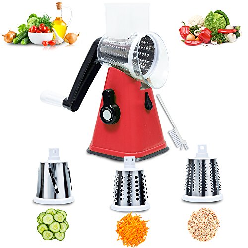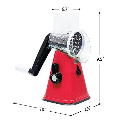 Mandoline Vegetable Slicer Chopper Cutter Grater Manual Hand 3-in-1 (Julienne Slicing Grinding) by Sanquility with Strong-Hold Suction Cup and Brush Red