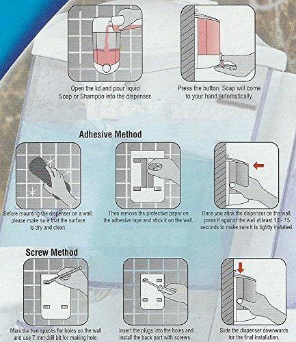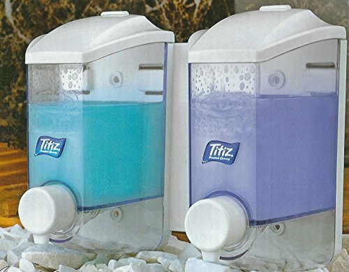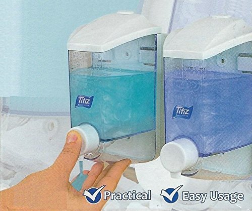 Studio : Titiz Publisher : Titiz Product Description Double Pump Soap Dispenser Finest Quality - made by Titiz (Made from Plastic) Wall Mounted by -- Drill (4 screws wall plugs included). //or// Adhesive Sticker (included). Practical lock-system. * Elegant clean design with transparent body. Easy, clean and simple installation -> Economical, Easy Clean use. -> Storing just about any liquid - Soap, Shampoo, Conditioner, Lotion, Creme, etc. -> Excellent pump suction strength. -> Very Comfortable!! -> Easily cleaned. -> Durable for years. Volume: 2 x 400 ml = 800 ml Length x Width x Height: 21.1 x 9.8 x 16.8 cm / 8.3 x 3.86 x 6.6 inch 0