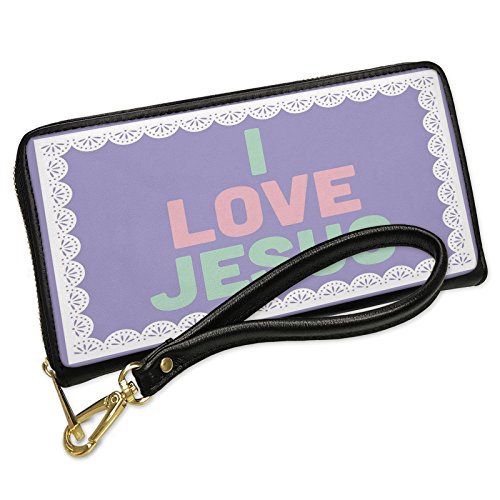 (NEONBLOND)/Accessories/Wallets, Money Key Organizers/DIRECT FROM USA/Wallet Clutch I Love Jesus Spring Colors Doily Border with Removable Wristlet Strap Neonblond