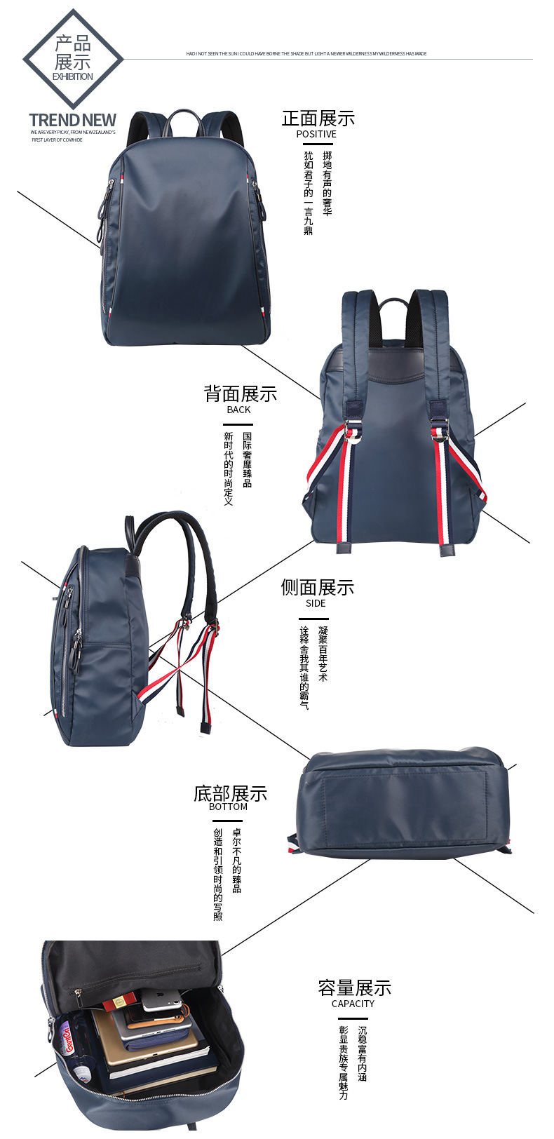 旨在突出和强调商品的易用性、多变性,及自由的背负方法。满足现代年轻群体的自由、创新和个性化的审美需求,透过一种潮流与休闲风格定位,致力于营造一种时尚soho的生活状态,为追求时尚,同时又为坚持自我、追求“自由、梦想、独立“的soho人群打造最契合的审美观点和生活体验。