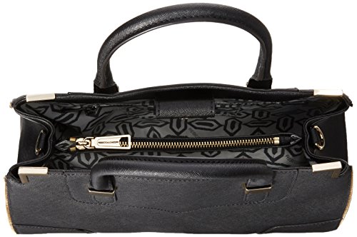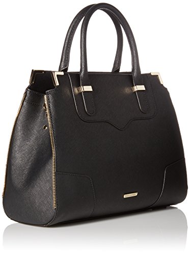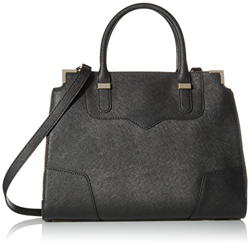 A mid-sized Rebecca Minkoff satchel, rendered in resilient saffiano leather. Gold-tone hardware adds sophisticated shine, and zip edges detail the corners. A magnetic snap secures the top line, and the lined interior features a dividing zip pouch and 4 pockets. Rolled handles. Optional adjustable strap. Dust bag included.Feature
