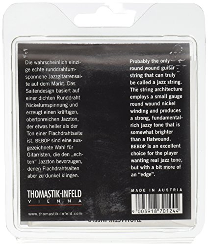 ReleaseDate : 2010-10-18 Studio : Dr Thomastik Publisher : Dr Thomastik Binding : Electronics Product Description Jazz guitar playing is a highly developed art form that requires musical discipline, imagination, humility, and good strings. Thomastik-Infeld Jazz BeBop Series guitar strings have roundwound low strings that will let your music sparkle. Gauges: .014 - .018 - .022(wound) - .032 - .040 - .055. 0