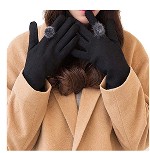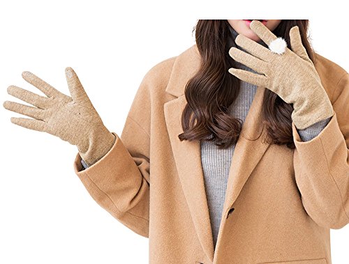 Binding : Apparel Product Description Women's Winter Warm Gloves Fleece Touch Screen Winter Gloves With Ball Cute Christmas Gift Our winter gloves are fashion forward designed, which are windproof and washable. They will show your taste of fashion and keep your hands warm indoors or outdoors. Hand wash would be better, hang dry, and do not bleach. Color: Black Grey and Khaki Material: cashmere 0