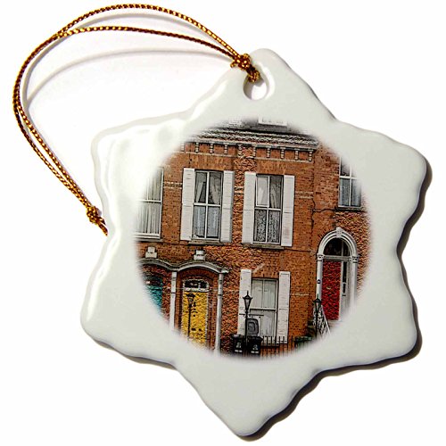 3dRose An Awesome Building Showing The Colorful Dublin Doors in Ireland Textured and Done in Two Finishes - Snowflake Ornament, Porcelain, 3-inch (orn_44125_1)