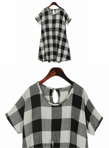 リラックススタイル ウエスト絞り ギンガムチェックワンピース 白×黒/ M