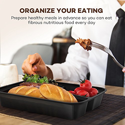 Meal Prep Food Containers 32 oz (20 Pack), Sable 3 Compartment Bento Lunch Boxes, Reusable Organization Cases, BPA Free (FDA, SGS & LFGB Certified, Heat and Cold Resistant, Stackable for Storage)