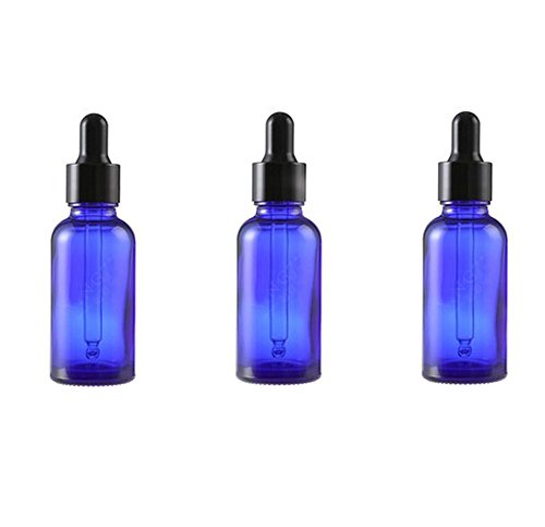 3PCS 30ML Empty Glass Essential Oil Bottle Dropper Packing Bottle Sample Bottles Cosmetics Container Holder for Home And Travel (Blue)