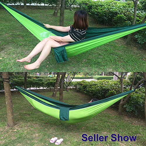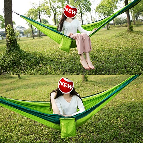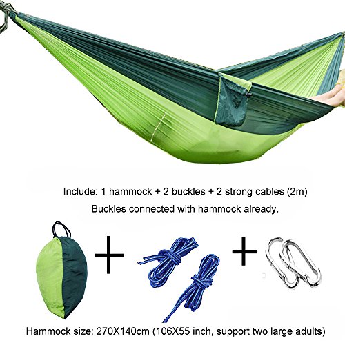 LARGE & STRONG: Great Bearing Capacity, measuring 106 * 55 inch (270cm L* 140cm W),fits for two adults comfortably. The large hammock is made of strong 210T parachute nylon material, maximum bearing 600lbs, but itself is lightweight, about 630 g (1.38 lbs), easy for take it with you to start camping
