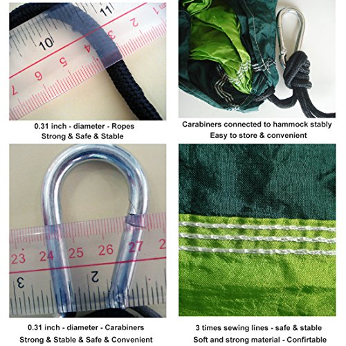 - Easy Setup back yard hammock outdoor: you only need a few minutes to hang this portable hammock on a tree, or nearby objects using the ropes and carabiners.