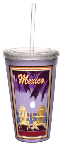 Tree-Free Greetings cc33044 Vintage Mexico Beach Chairs by Joanne Kollman Artful Traveler Double-Walled Cool Cup with Reusable Straw, 16-Ounce
