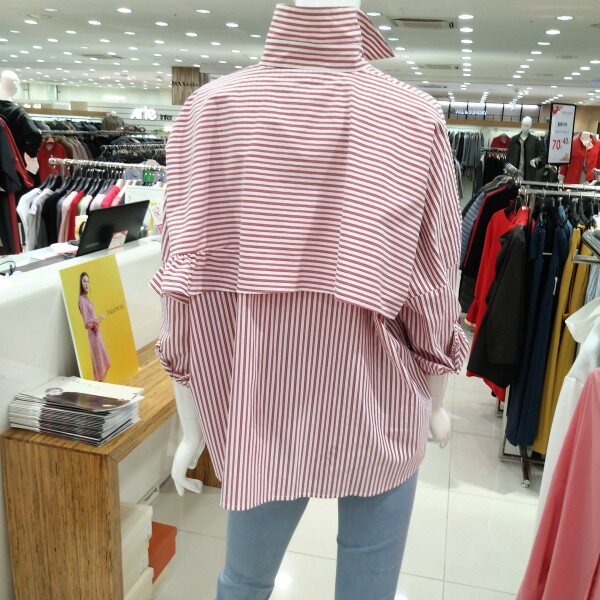 오브핏 프리사이즈로 박시함 ㆍ 등에 포인트를 주어 좌수대칭으로 디자인되어 독특한 느낌 ㆍ프릴처리된 부분이 있어 깜찍 발랄한 느낌