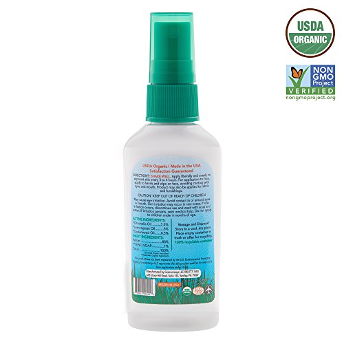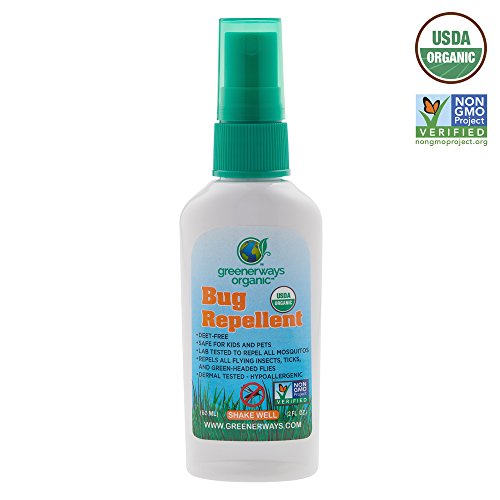 Greenerways Organic Mosquito Insect Repellent Travel Size, Premium, USDA Organic, DEET-FREE, Natural, Mosquito-Repellant, Bug Spray, Clothing Safe, Baby Safe, Kid Safe, Pet Safe, Pest Control - 2 Oz