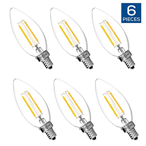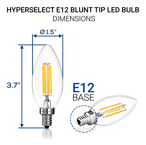 HyperSelect LED Edison Blunt Tip Filament Candle, 2-Watt (30-Watt Equivalent),Small Base (E12), 340°-Beam Angle, Non-Dimmable, 2700K (Warm White) - Pack of 6