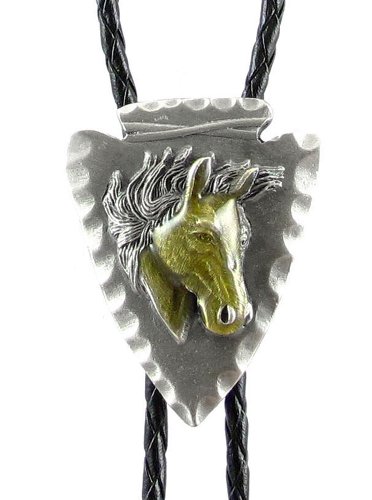 Bolo - Horsehead on Arrowhead - Sculpted Pewter Bolo Tie