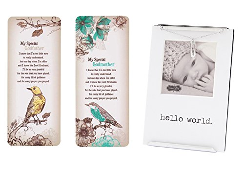 Godparent Gift Bundle | Hello World Picture Frame From Mud Pie and Bookmarks for Godmother and Godfather