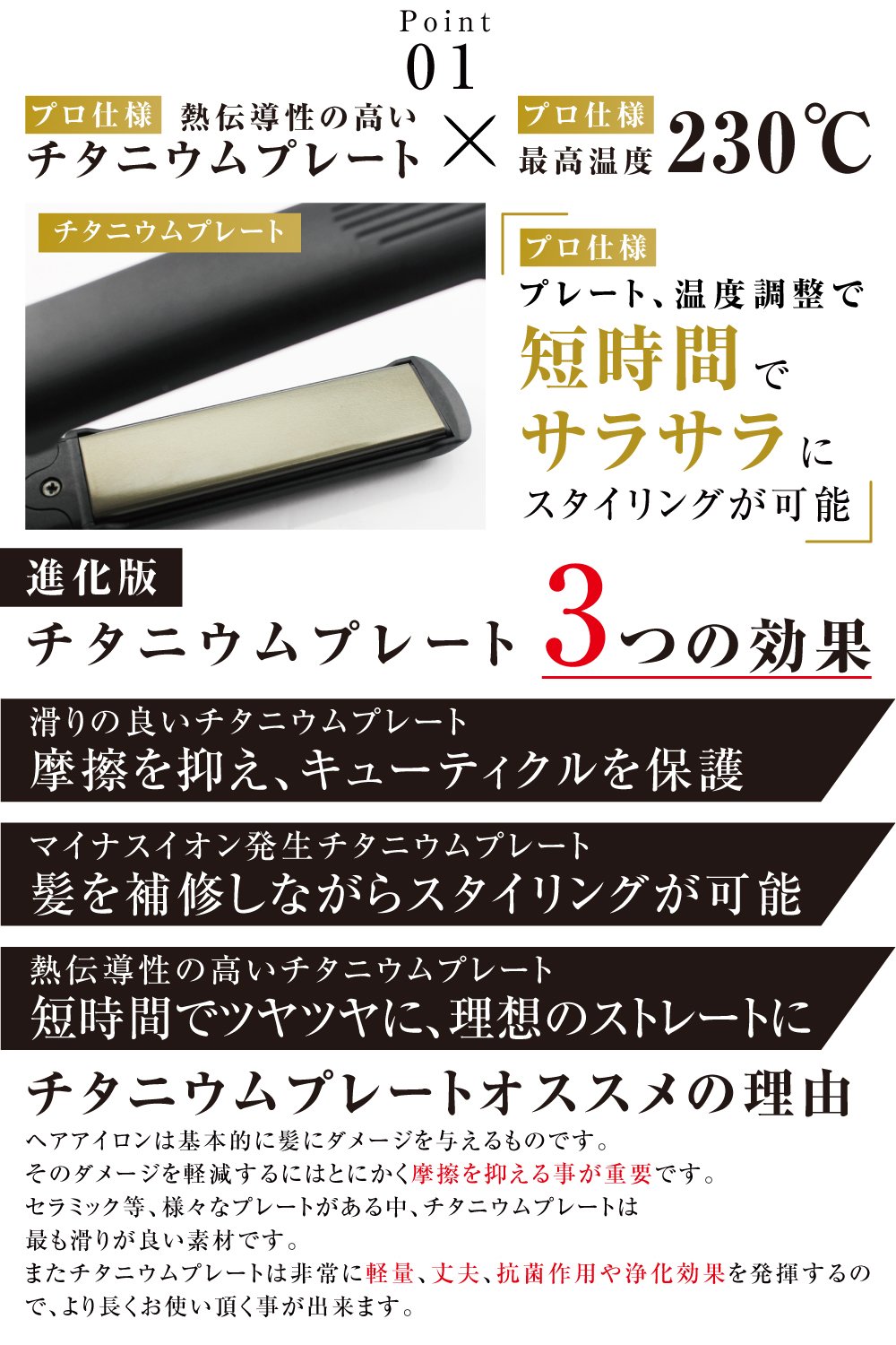 Titanium plate, styling is possible smoothly in a short time with temperature adjustment