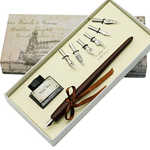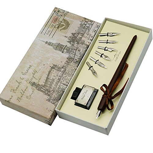 - ✅ CALLIGRAPHY PEN SET: The Wooden Dip Pen, Six different nibs, 1 Bottle ink, can be used to write different size words. it is a very popular item which is sure meet your shopping requirements.