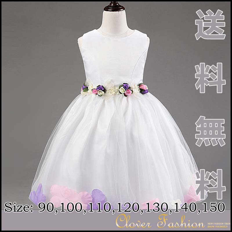 送料無料 2015新作 女の子 ワンピース 子供服 フォーマル キッズ 90 100 110 120 130 140 150 白 黒 結婚式 七五三 お呼ばれ ワンピース モノトーン 上品 上品 子ども こども 花ベルト 演出服 発表会