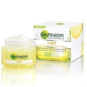 -. Binding : Health and Beauty -. Brand : Garnier -. EAN : 8851900563544 -. Feature : Contains SPF17 and PA++ an Anti-UVA filter / Powered by pure lemon essence and SnowPine WhiteSource, a rare derivative of snow pine extract / Whiten, moisturizes and creates a more even and radiant look / 50ml, 100% new from original shop / We serve only 50ml size -. IsAdultProduct : 0 -. IsAutographed : 0 -. IsMemorabilia : 0 -. Label : Garnier -. Manufacturer : Garnier -. MPN : PER-A-4339 -. PackageQuantity : 1 -. PartNumber : PER-A-4339 -. ProductGroup : Beauty -. ProductTypeName : HEALTH_PERSONAL_CARE -. Publisher : Garnier -. Studio : Garnier -. Title : Garnier Skin Naturals Light Whiten and Even Moisturizing Day Cream (50ml) - From Original Shop -. UPC : 885254230201