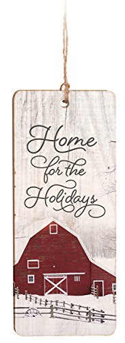 Home For The Holidays Red Barn Design Stressed 4 Inch Wood Hanging Ornament