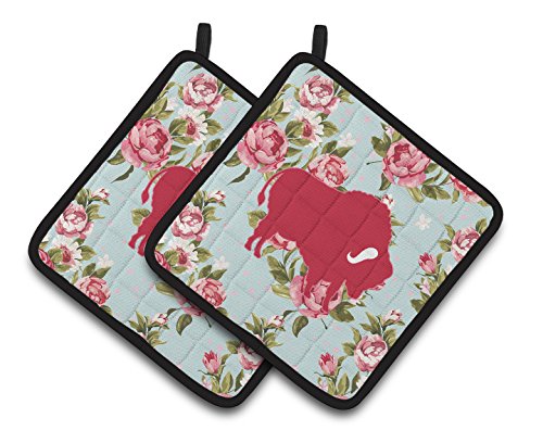 Caroline's Treasures Buffalo Shabby Chic Blue Roses Pair of Pot Holders BB1127-RS-BU-PTHD, 7.5HX7.5W, Multicolor