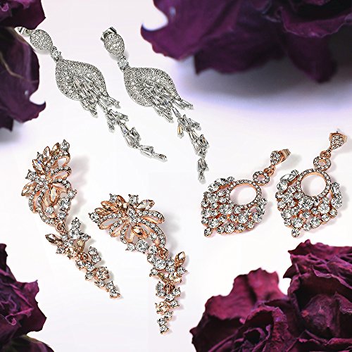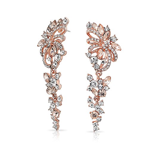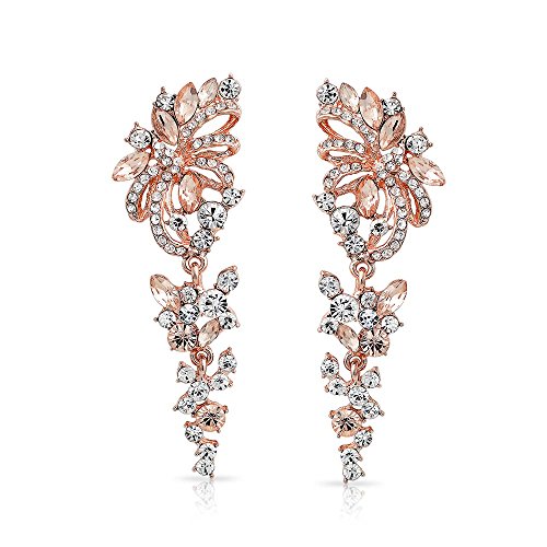 Turn up the glam with these gorgeous chandelier earrings. Our rose gold plated flower dangle earrings are iconic inspired vintage jewelry. Get a turn of the century feel for your wedding day. An exquisite alternative to standard bridal jewelry or bridesmaid jewelry, these comfortable crystal earrings are breathtaking.Feature