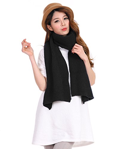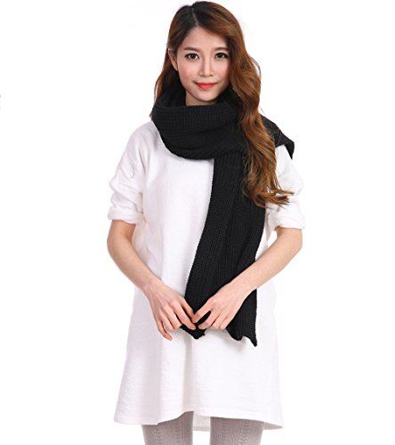 Title : Anboor Luxurious Thick Knitted Scarf with Solid Color Super Warm Shawl for Women, Black
