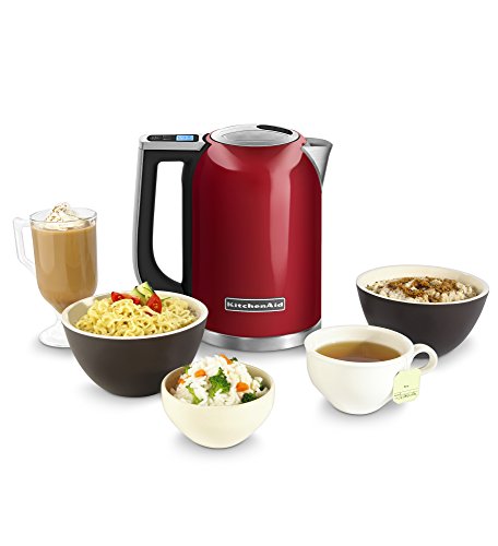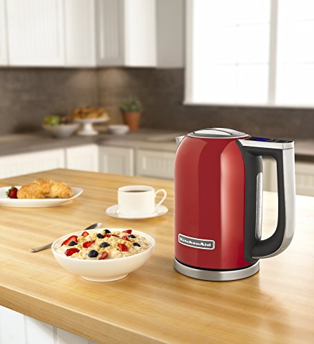 -. Binding : Kitchen -. Brand : KitchenAid -. Color : Multi -. Feature : Variable temperature control heats water to the optimal temperature / 30 Minute Keep Warm keeps water at the desired temperature / Extra Wide Illuminated Water Window helps you fill kettle with the right amount of water / LED functionality away from base allows you to always know the water temperature for the perfect tea / 1.7 liter/7-cup capacity -. Label : KitchenAid -. Manufacturer : KitchenAid -. Model : KEK1722ER-P -. MPN : KEK1722 -. NumberOfItems : 1 -. PackageQuantity : 1 -. PartNumber : KEK1722 -. ProductGroup : Kitchen -. ProductTypeName : KITCHEN -. Publisher : KitchenAid -. Studio : KitchenAid -. Title : KitchenAid 1.7-Liter Electric Kettle with LED Display