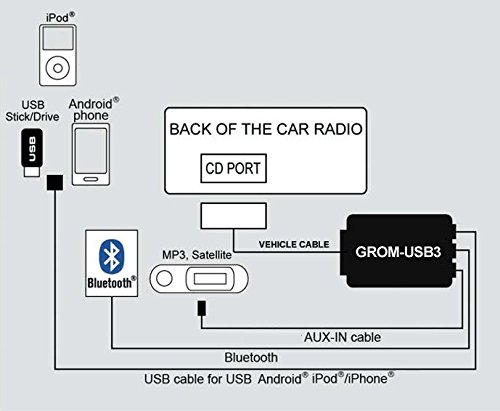 If you have an Android® Phone or Tablet you can integrate it to your car stereo.You will plug the MicroUSB cable to the USB port of GROM USB unit directly. Android integration requires Dashlinq Android App