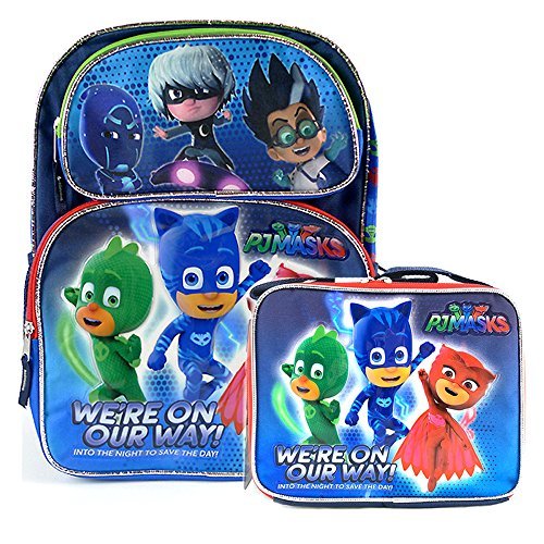 PJ Mask Large School Backpack Bag - 16" Large One main zippered compartment Two front zippered compartments Two side pockets Adjustable padded shoulder straps Measures around: 16"H x 12"W x 5"D PJ Mask School Insulated Lunch Bag w/ Strap Brand New PJ Mask School Insulated Lunch Bag w/ Strap -Termal Insulation inside for better temperature keeping -Adjustable Shoulder Strap -Material : Polyester -Size Approx : W 9-1/2" x H 7-1/2" x L 3-3/4"Feature